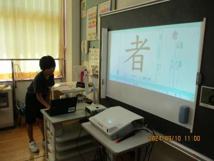 新出漢字の練習の様子です。学習リーダーを中心に、自分たちで学習を進めています。読む時間、空書きの時間、書く時間など、時間を区切りながら集中して取り組んでいます。