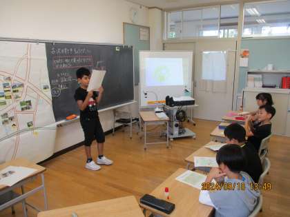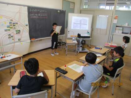 生活科の時間に、町たんけんで見つけたステキな場所や物を発表しました。同じ場所を選んでいても、人によって見つけたステキが違うことが分かりました。これから、さらに詳しく古沢の町のことを調べていく予定です。
