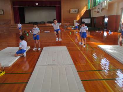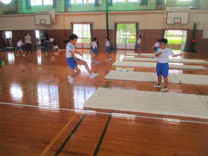 「もっと遠くへ」自分の目当てをもって、走り幅跳びの練習をしています。「もう少しで3mだ!」「○○さん、がんばれ!」友達からの励ましもがんばる原動力です。