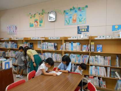 9月13日(木) 2・3年 読み聞かせ 公開日 2024/09/12 更新日 2024/09/12 最新の出来事 図書室で学校司書の先生に読み聞かせをしていただきました。その後、自分で読みたい本を借りて読みました。どの本にしようか友達と選んだり、夢中になって読んだりする姿がみられました。