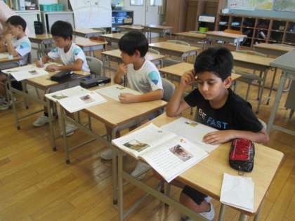 「どうぶつ園のじゅうい」の学習です。獣医さんが診察した動物や獣医さんの仕事について読み取っています。