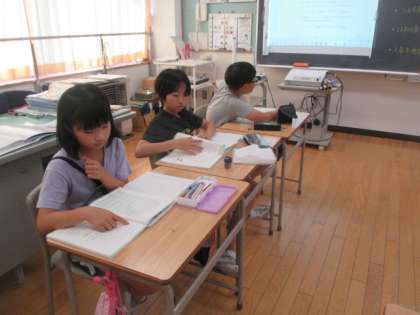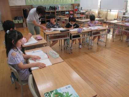 ローマ字の学習をしています。ローマ字表を見て書き表し方のきまりを見つけることができたかな。