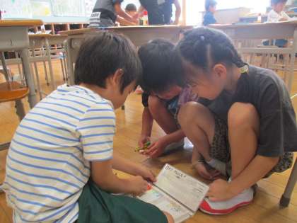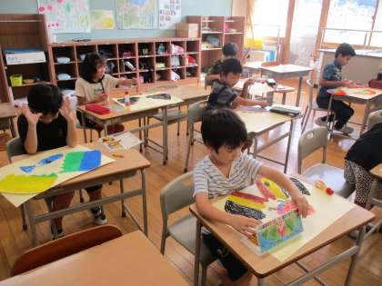 9月24日(水)1、2年生 図工 公開日 2024/09/24 更新日 2024/09/24 2年 先週描いた、一人一人の「ひみつのたまご」が割れました。どんな割り方にするのか、ぎざぎざ線、なみなみ線などを工夫しながら丁寧に切りました。その後、中から何が産まれるのか想像しながら楽しく描きました。どんな作品になるのか楽しみです。 友達のクレヨンが落ちてしまったときに、さっと集まってみんなで拾う姿もとてもステキでした。