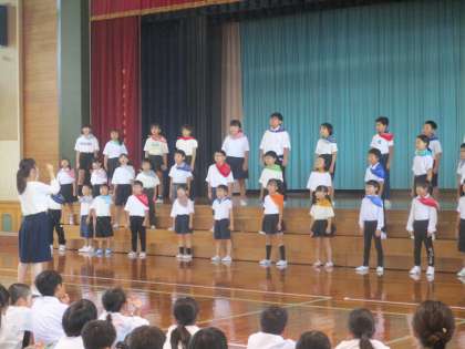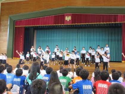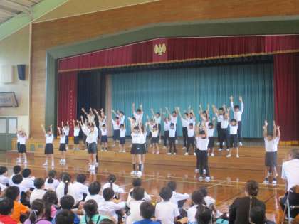 今日は、呉羽小学校で区域連合音楽会がありました。古沢小は全校児童で参加し「MUSIC」と「いのちのオーケストラ」を歌いました。「MUSIC」は、2部に分かれて美しくかっこいいハーモニーを奏でていました。「いのちのオーケストラ」はすてきなダンスチームと共に、みんな笑顔で歌うことができました。学習発表会でも披露しますので、お楽しみに!