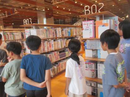10月3日(木)4年 校外学習2 公開日 2024/10/03 更新日 2024/10/03 4年 市立図書館本館では、たくさんの本に驚く4年生でした。3万冊の本があるそうです。また、普段は入ることのできない書庫も見学させていただきました。 図書館には、調べ学習に使える本や、外国語の本などもありました。ぜひ、おうちの人とも行ってみてくださいね。