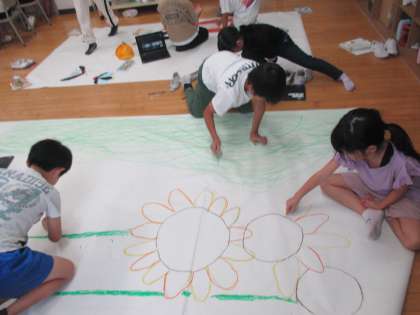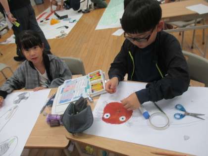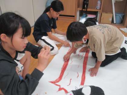 3・4年生は、学習発表会でこれまで学習してできるようになってきたことの発表を行います。今日の図工の時間には、発表をもっと盛り上げるために、背景の絵を描きました。「もっとこうしよう」「○○さん、上手だね」と話しながら活動していました。3・4年生で協力していて、とっても素敵な絵になりそうです。完成が楽しみです。