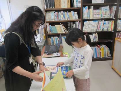 10月10日(木)休み時間の図書室では 公開日 2024/10/10 更新日 2024/10/10 最新の出来事 図書室で借りたい本を選んだり、司書の先生と本について話をしたりする子供たちの姿が見られます。