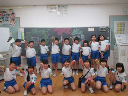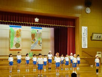 10月19日(土)3・4年 学習発表会 公開日 2024/10/19 更新日 2024/10/19 4年 3・4年生は、創作劇「今わたしたちができること」の発表を行いました。発表内容を考える段階から、3・4年生みんなで話合い、アイディアを出し、協力して取り組んできました。毎回、真剣に練習を重ねてきた3・4年生のみんな。今日はその成果をたくさんの方に見ていただくことができて、本番後の子供たちは「やりきった!」と笑顔いっぱいでした。