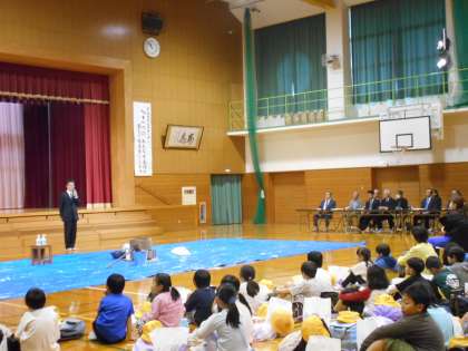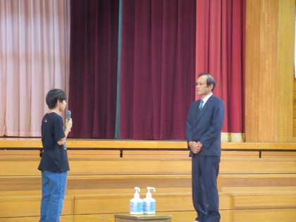 10月19日(土)PTA収穫感謝のつどい 公開日 2024/10/19 更新日 2024/10/19 最新の出来事 学習発表会の後に、PTA収穫感謝のつどいが行われました。児童代表が田植えや稲刈りでお世話いただいたファーム古沢の方に感謝の気持ちを伝えました。