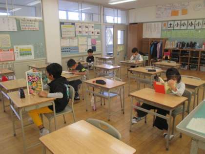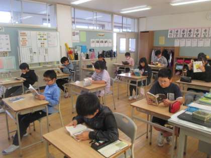 2年生、5・6年生の教室はシーンとしています。一人一人が読書を楽しんでいます。