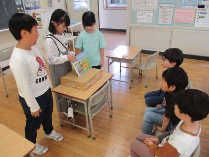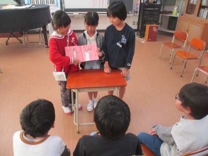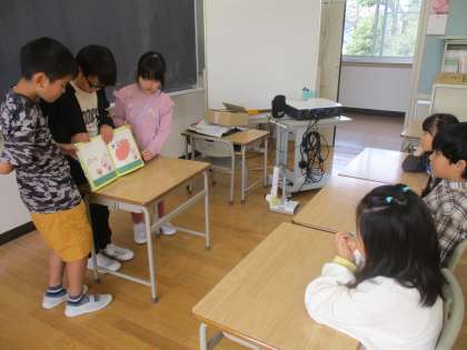 国語科「おすすめの一冊を決めよう」の学習を生かして、1年生に読み聞かせをしました。役割や読み方を工夫しながら読むことができました。1年生がもっと本が好きになってくれるといいですね。