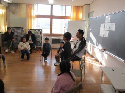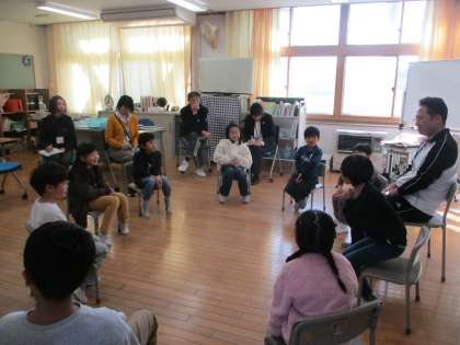1年生教室では、「和輪話タイム」で聴き合い活動に取り組んでいました。今日のお題は「自分の一番大切なもの」です。目をつないで真剣に聴く姿、頷いたり反応したりしながら、話を最後まで聴こうとする姿などが見られ、1年生の成長を感じることができました。