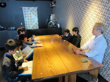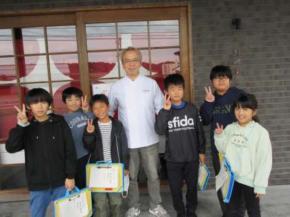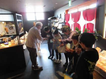 11月12日(火) 総合的な学習 古沢の「キラ人」さん〜引網香月堂〜 公開日 2024/11/12 更新日 2024/11/12 最新の出来事 今日は総合的な学習の時間の古沢の「キラ人」さん探しで、引網香月堂チームがインタビューに行きました。子供たちは、最初に名刺をもらったことに感動しながら、自分たちで考えた質問を一生懸命にしていました。店が休みにもかかわらず、丁寧にインタビューに答えていただいた引網さん、ありがとうございました。