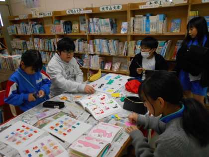 11月26日(火) 折って!切って!はろう!〜切り紙〜 第2弾 公開日 2024/11/26 更新日 2024/11/26 最新の出来事 大休憩に図書室で切り紙のイベント第2弾が行われました。 今回は、前回の切り紙よりもパワーアップして難しい作品にチャレンジしました。学校司書の先生が準備してくださった型紙を利用したり、図書室の本を見たりしながら自分の作りたい作品に取り組みました。友達と話しながら、季節に合った作品などいろいろな切り紙に楽しくチャレンジする姿が見られました。