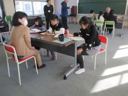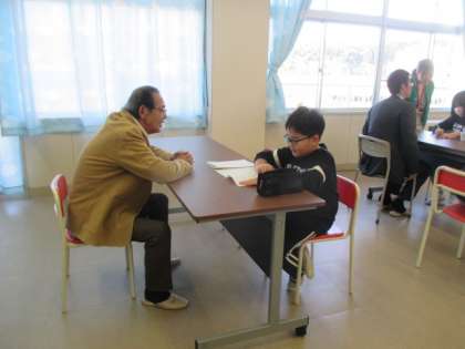 今日は、学校運営協議委員の皆さんにインタビューできるチャンスの日です。皆さん、子供たちからの質問に丁寧に答えてくださいました。
