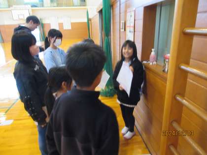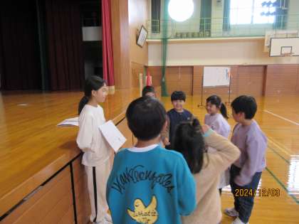 12月3日(火) ワクワクドキドキ本に親しもう集会 その1 公開日 2024/12/03 更新日 2024/12/03 最新の出来事 図書・情報発信委員会主催の集会がありました。クイズラリーでは委員会メンバーおすすめの本から出題されたクイズにファミリー班ごとにチャレンジしました。