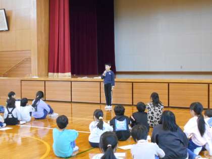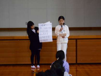 12月3日(火) ワクワクドキドキ本に親しもう集会 その3 公開日 2024/12/03 更新日 2024/12/03 最新の出来事 図書・情報発信委員会メンバーは、今日の集会に向け、委員会の時間を中心に出題する問題を考えたり、必要な準備をしたりと自分の役割にも一生懸命取り組みました。「もっとこうしたらいいと思うよ」「ここは、どうする?」など自分たちで工夫しながらみんなが楽しんでくれる集会にしようと進んで取り組む姿が印象的でした。