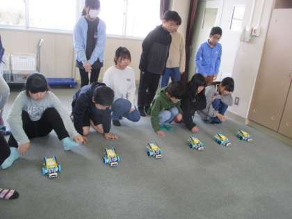 ロボットの車を走らせる方向、距離、速度を細かく設定します。