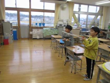 12月9日(月)2年生 生活科 公開日 2024/12/09 更新日 2024/12/09 2年 おもちゃ作りが進行中です。自分たちで試しながら、もっと楽しく遊べるようにルール作りをしたり、おもちゃを改良したりしています。