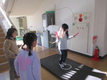 12月10日(火)1年生 ジャンピングボードで縄跳び練習