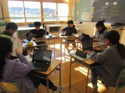 今日は、一人一人がクイズカードを作成中です。今まで学習したことを生かして、英語でクイズを作っています。