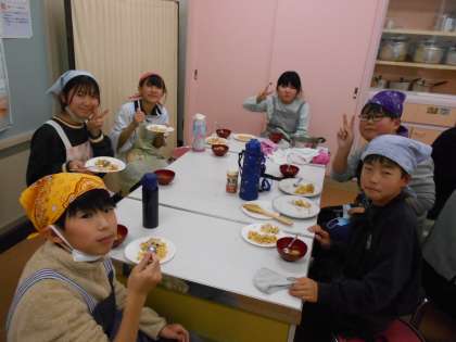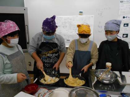12月13日(金) 調理実習 公開日 2024/12/13 更新日 2024/12/13 6年 6年生は、家庭科の学習でチャーハンと野菜スープををつくりました。チャーハングループは、卵を入れるタイミングや味付けにこだわり、味見をしながら納得いくまでこだわって仕上げました。野菜スープグループは、野菜の大きさをそろえて切ったり、コンソメの量を考えながら優しい味に仕上げました。お互いに料理を食べ比べながら「おいしいね」「上手にできたね」と満足そうに試食していました。