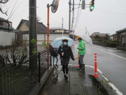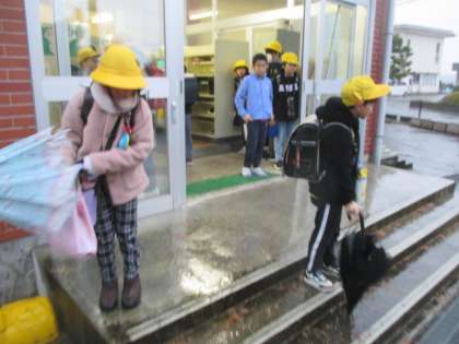 今朝も冷たい雨が降っています。見守ってくださる地域の方にも元気よく挨拶して、子供たちが登校します。児童玄関では、かさの始末もしっかりしています。