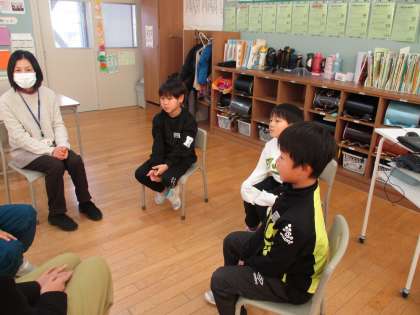 2年生教室では、子供たちと先生が輪になって、2学期がんばったことについてサークル対話をしていました。「3年生が校外学習に行っている時に、給食の準備を2年生パワーでがんばった」など前向きな発言が聞かれました。