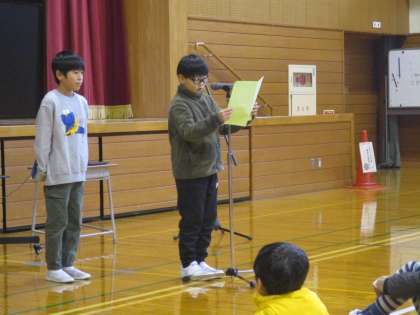 終業式は、一人一人が2学期を振り、話す人に心を傾けながら参加することができました。また、3・4年生の代表児童が、「2学期がんばったこと」について発表をしました。全校の前で堂々と発表することができました。