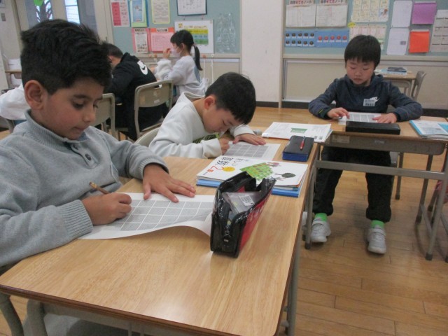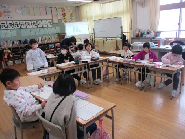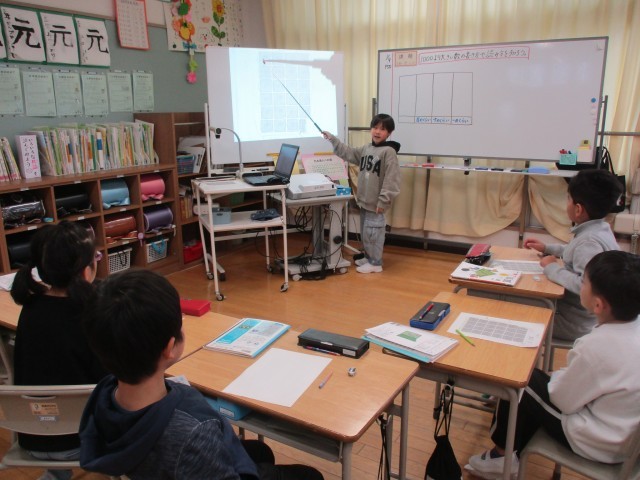 算数は、それぞれ新しい内容の学習がはじまりました。その中で、自分の考えを積極的に発表したり、じっくりと考えたりする姿がたくさん見られました。3学期の学習に意欲的に取り組んでいる子供たちです。