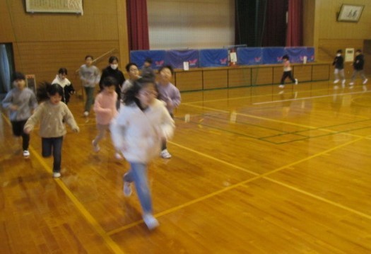3学期のチャレンジタイムがスタートしました。体育館で、子供たちが元気いっぱい走っています。