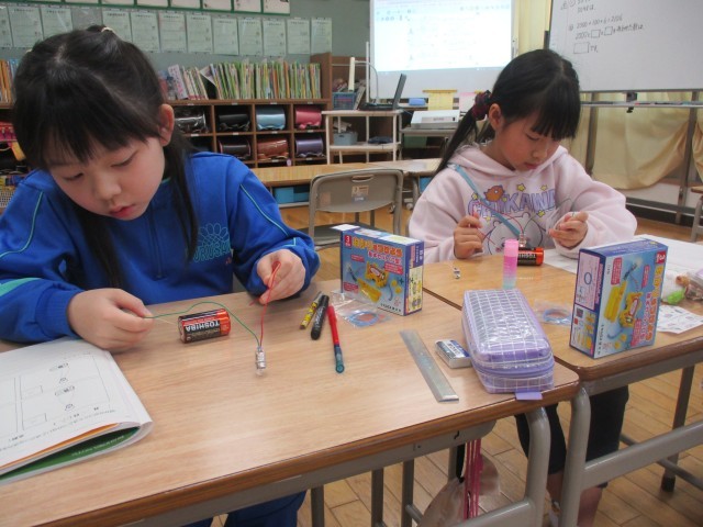 「明かりをつけよう」の学習が始まりました。今日は、明かりがつくつなぎ方を考えて試しました。