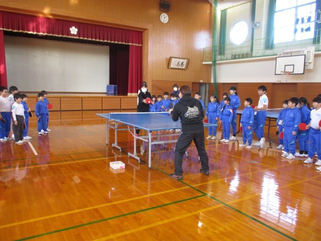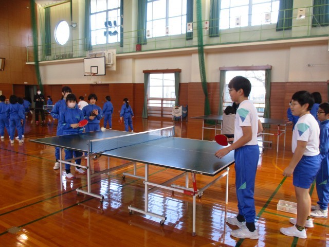 今日の5時間目は、全校で卓球教室に参加しました。外部講師をお招きし、フォアやバックの打ち方を教わりました。ラリーがたくさん続くように熱心に練習していました。