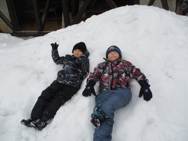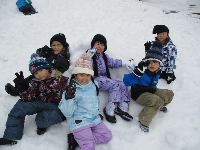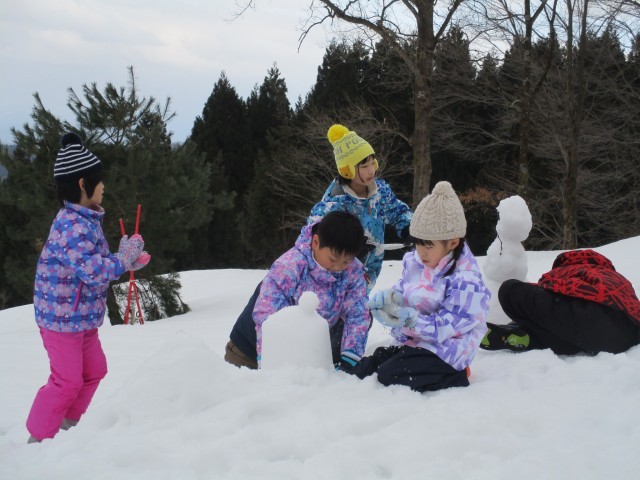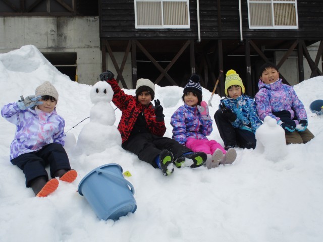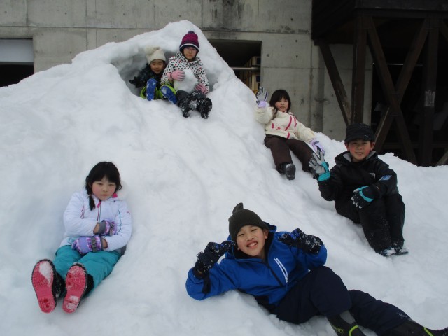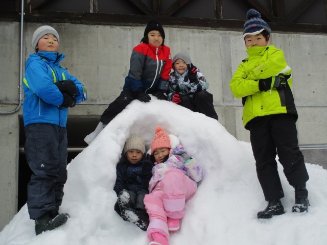 午後からは、雪像作りをしました。グループで協力しながら作りました。雪だるま、かまくら、椅子などが完成しました!