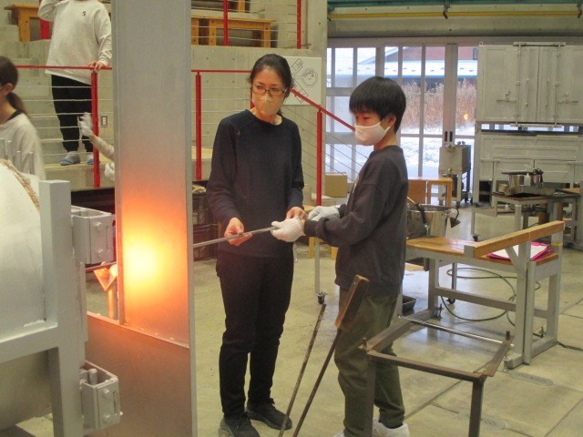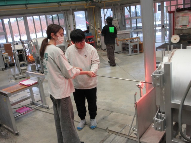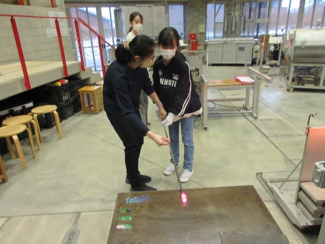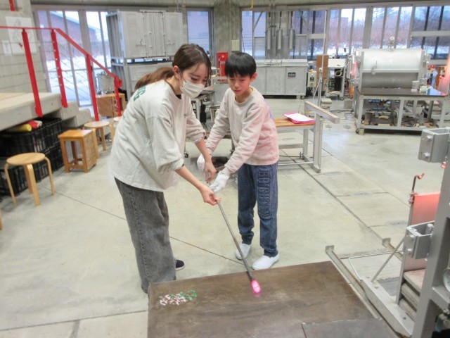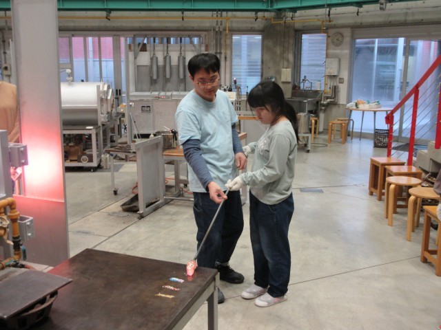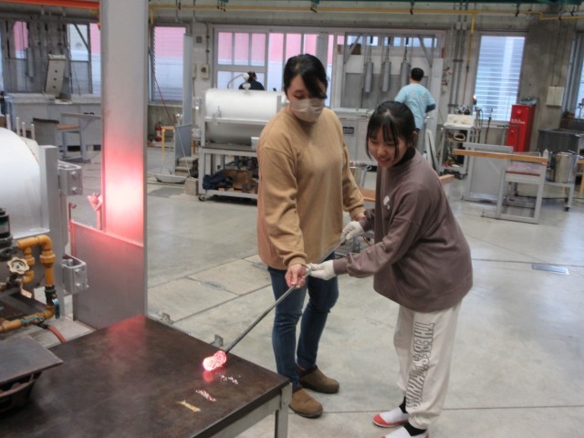 その後、工房でガラスを溶かしながら作業をしました。素敵な作品ができるといいですね!
