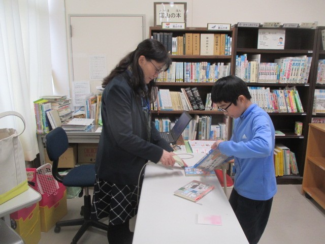 今日は読書タイムの日です。学校司書の先生が図書室に来てくださる日でもあります。
