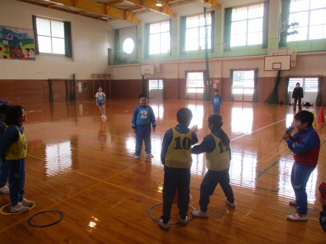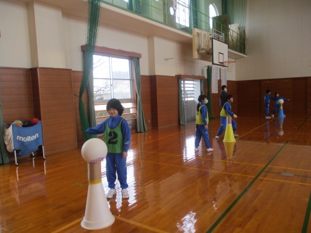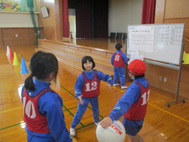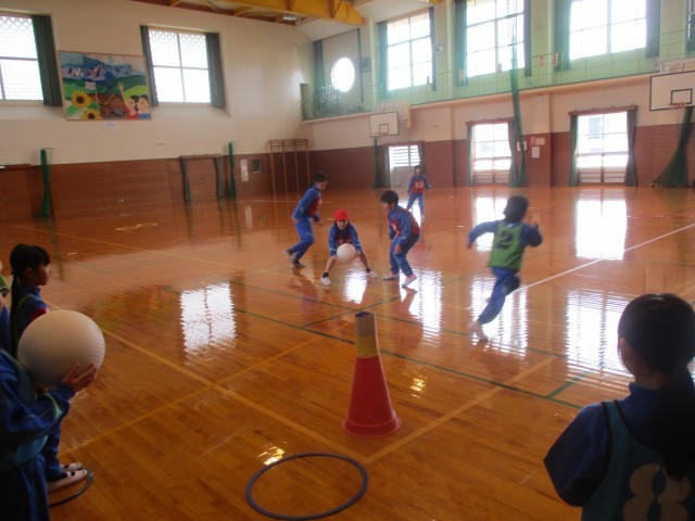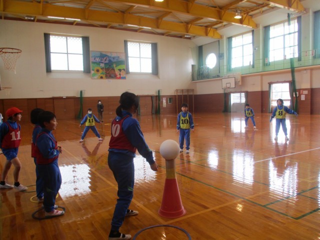 3、4年生はハンドベースボールの学習をしています。チームで協力しながら、攻めの動きも守りの動きもとてもじょうずになってきました。