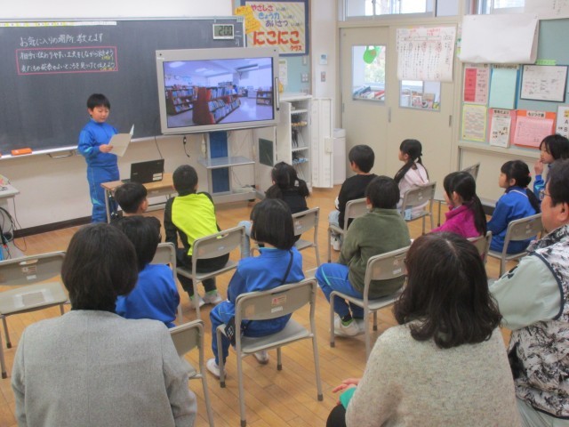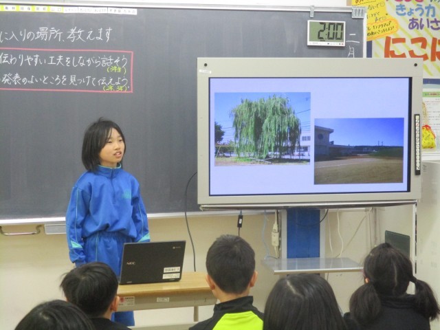 古沢小学校のお気に入りの場所発表会を開きました。2年生や職員のみなさんも招待して、発表を聞いてもらいました。相手に伝わるように話し方に気を付け、写真も見せながら、堂々と発表することができました。