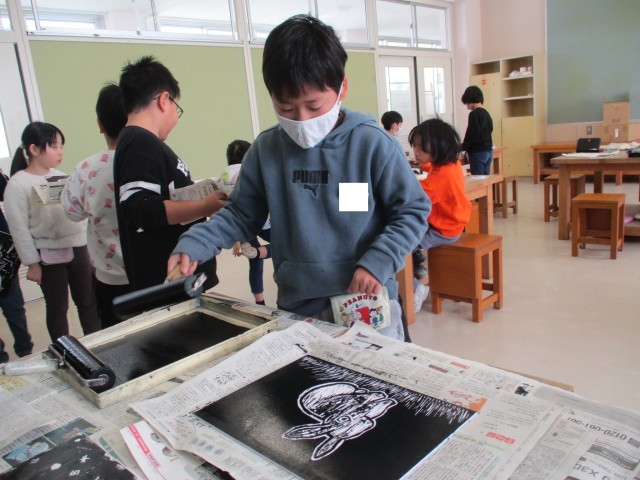 版画作品が完成しました!「今にも動き出しそうな生き物」をテーマに、じっくり彫ったり、色を工夫したりしながら魅力いっぱいの作品に仕上がりました。