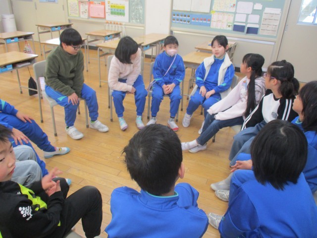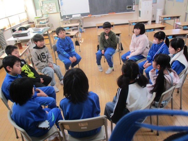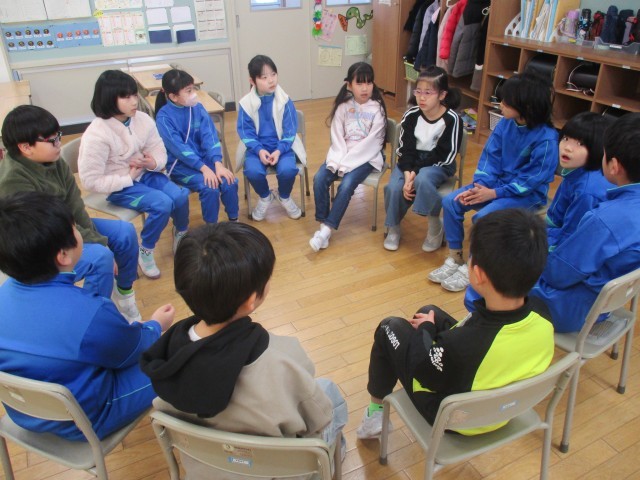 今日は「今年1番の思い出」「今おすすめの物」というテーマで対話しました。友達の話をうなずきながら聞いたり、似ている考えがあると繋げて話たりするなど、じっくりと友達の話を聞こうとする姿がとてもすてきでした。