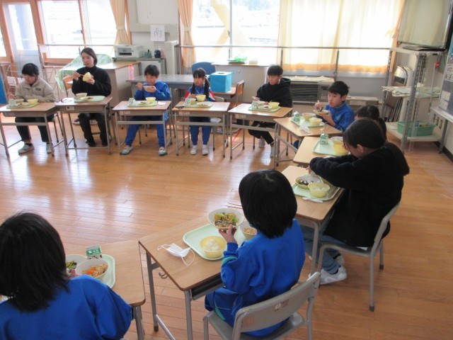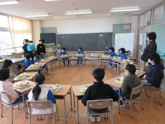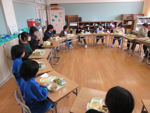6年生会食の最終日は3年生です。今日も6年生との会話を楽しみながらの楽しい会食になりました。6年生には、あと少しの小学校生活のよい思い出になりました。