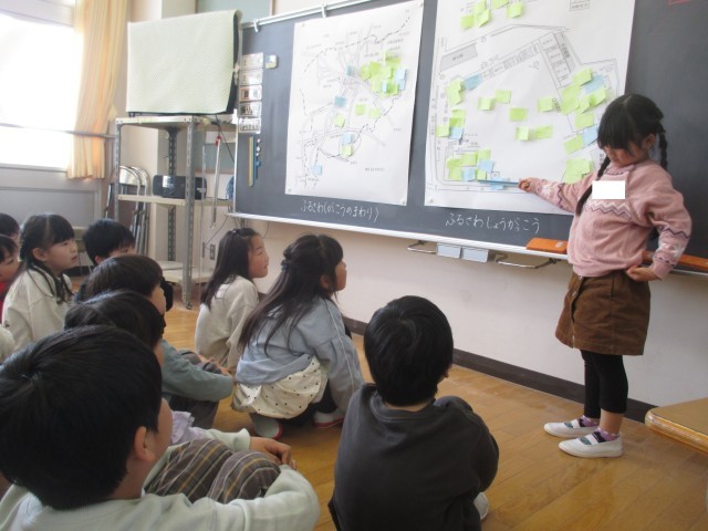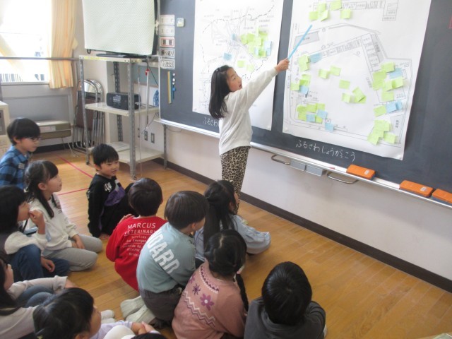 火曜日の生活科の時間は、1・2年生一緒に学習を進めています。今日は学校と校区の地図に、自分の知っている「すてき」を付箋に書いて貼ってみました。たくさん「すてき」を知っているところもあれば、まだまだ気になるところもあるようです。1年生はこれから学校探検、2年生は町探検をしながらもっとたくさんの「すてき」を見付けていきたいと思います。