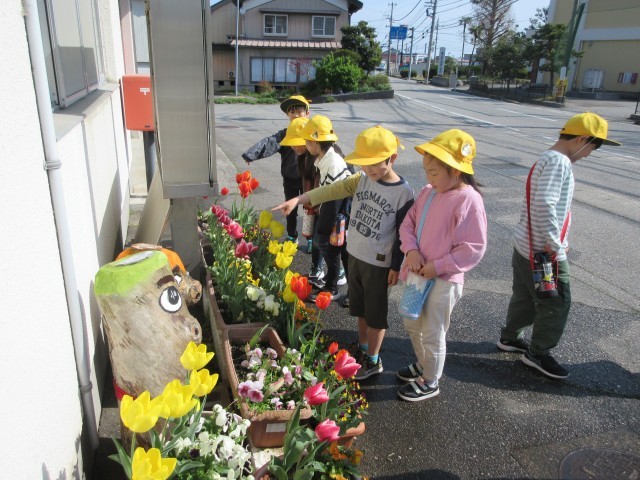 生活科では、古沢校区のすてきを見つけるために町探検の学習をしています。今日は町探検第1弾として、小学校の周りを探検しました。綺麗な花が咲いていることや、近くのパン屋さんからいい匂いがすることなど、たくさん話しながら活動しました。まだまだ気になる場所がある2年生。これからの町探検の学習を通して、古沢のすてきな場所、人、ものなど、たくさん見つけてほしいです。