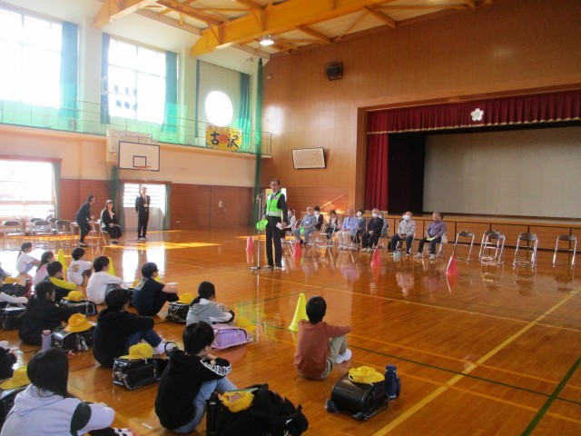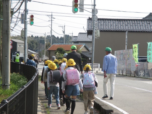 結成式後は、隊員の方々の見守りのもと、集団下校をしました。今年度も、子供たちの安全・安心のためお世話になります。よろしくお願いします。