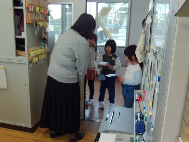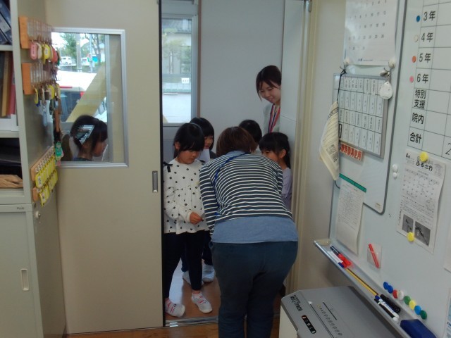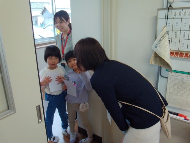 1年生は、小学校の先生や職員の方と仲よくなりたいと職員室を訪問しました。