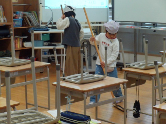 広い教室も2~3人で頑張っています。チームワークもばっちりです。