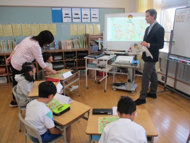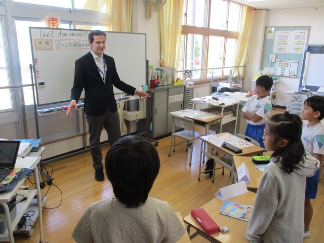 ALTの先生との初めての外国語活動でした。今日は、「How are you?」のいろいろな答え方を学習しました。ジェスチャーを交えながら楽しく話すことができました。