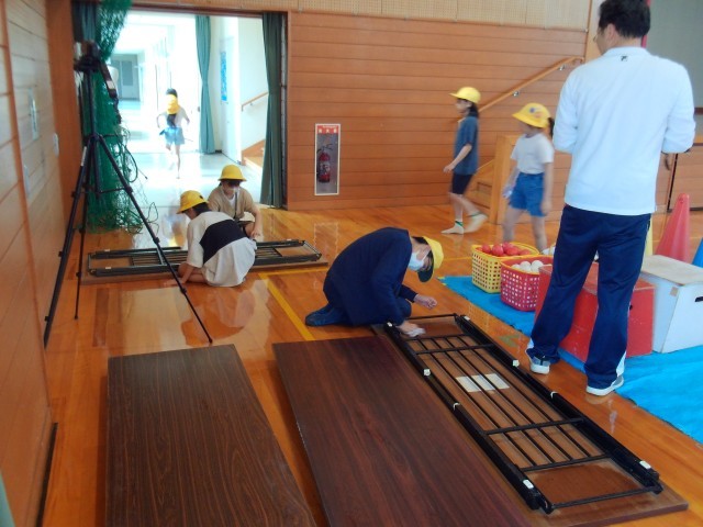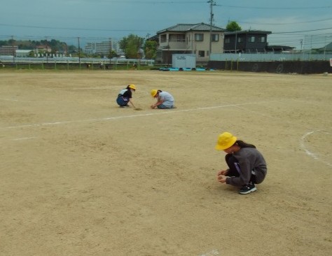 グラウンドの草むしりをしたり、長机やいすをきれいに拭いたり、必要な道具を運んだりしました。みなさんのおかげで環境が整いました。