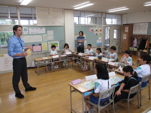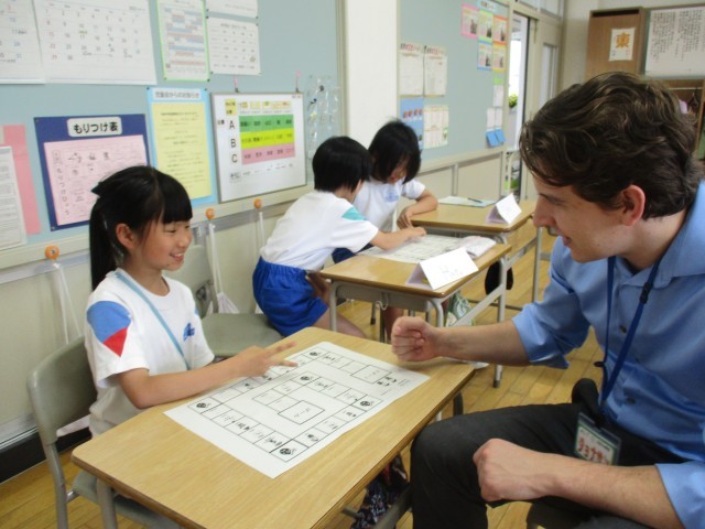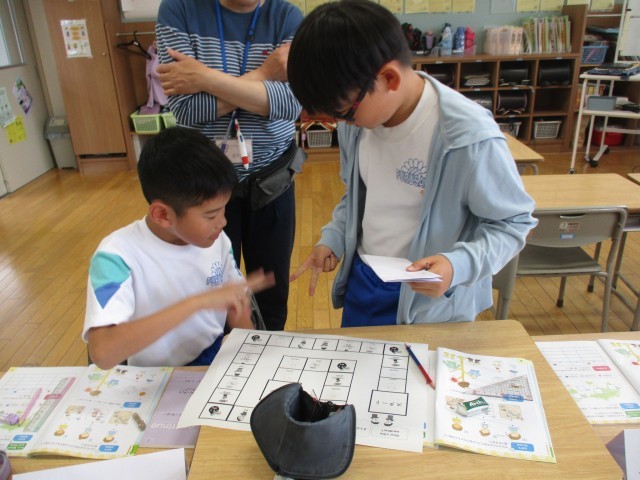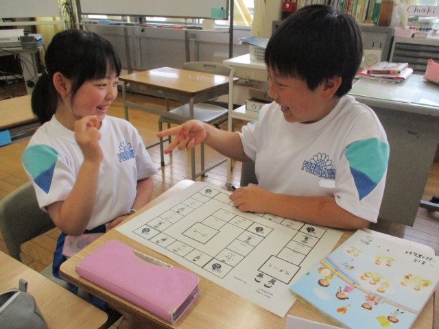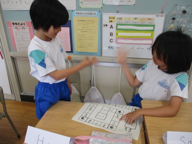 4年生はALTの先生といろいろな天気の表し方を学習しました。最後に、覚えた英語を使ってジャンケンゲームを楽しみました。