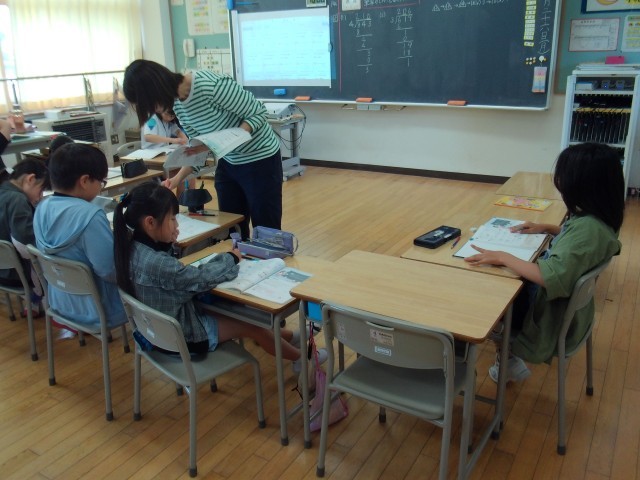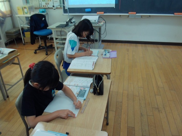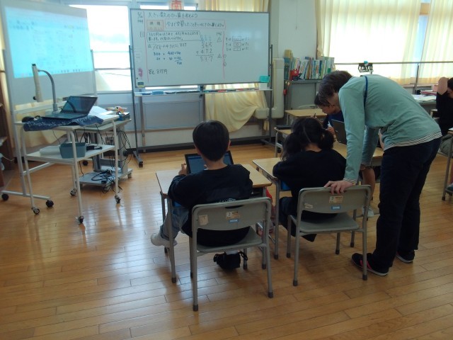 3年生は3桁のたし算の筆算、4年生は3桁÷1桁の筆算に取り組んでいました。数は大きくなっても、前に学習した筆算の方法を生かして解けそうですね。